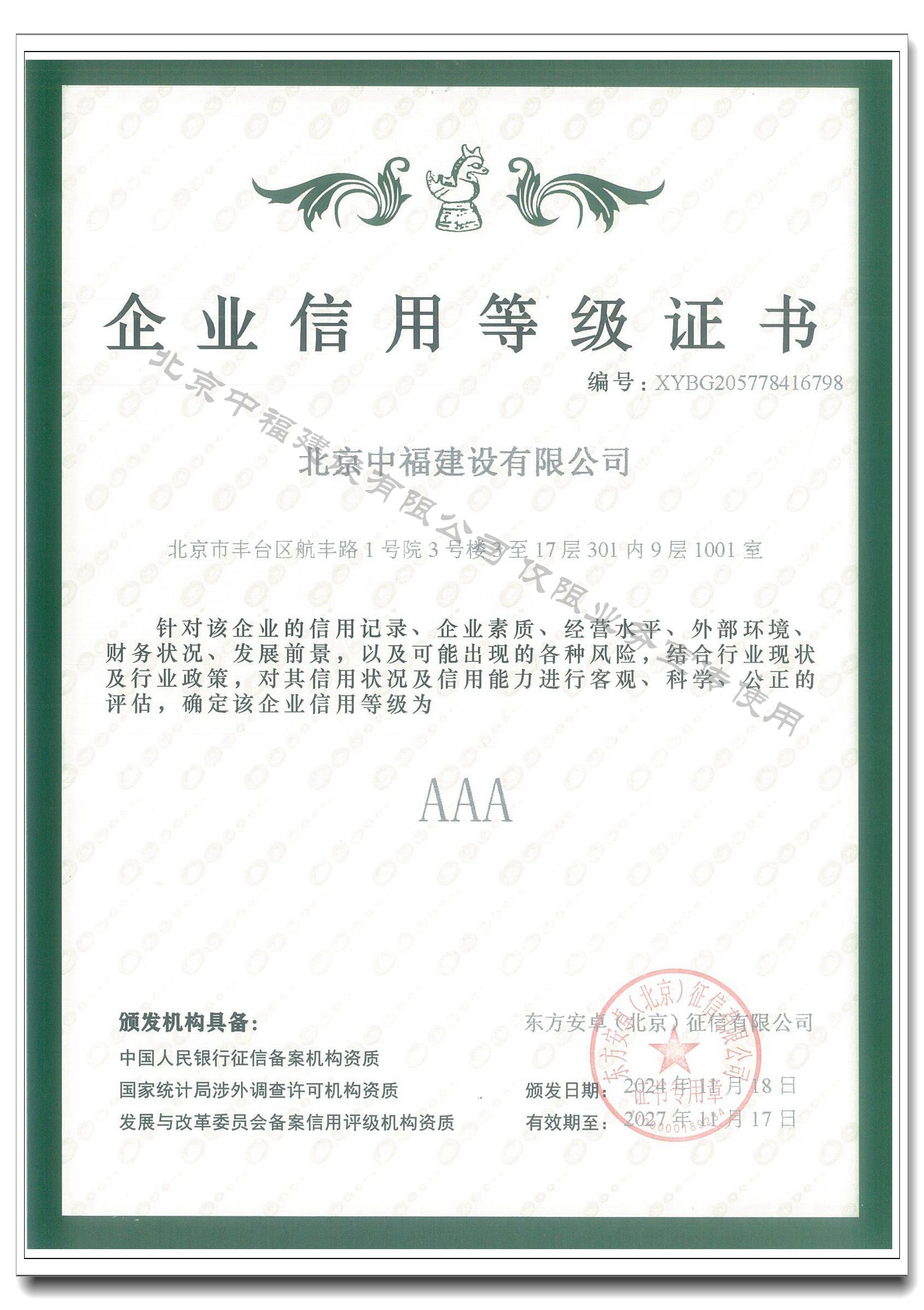 企業(yè)信用等級(jí)3A證書(shū)