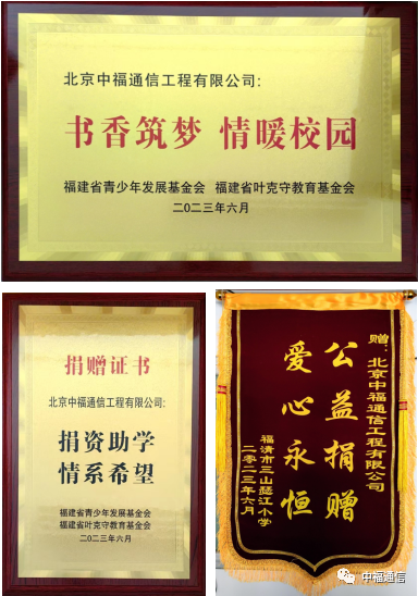 北京中福通信工程有限公司積極響應國家“關心下一代健康成長”的倡導,持續(xù)開展“捐書助學 愛心筑夢”活動。今年,通過福建省慈善總會向福清市三山瑟江小學捐獻2萬元購書款,讓莘莘學子感受黨的關懷和社會主義大家庭的溫暖。 2023年9月11日,在福清市三山瑟江小學舉行捐書助學儀式。受北京中福通信工程有限公司委托,福建分公司總經理陳友圣和分公司黨支部書記朱宗武出席捐書助學儀式。陳總經理說:“奉獻愛心,收獲希望。我們積極倡議更多企業(yè)伸出援助之手,以拳拳愛心為貧困學子撐起一片晴朗的天空,鋪設一條綠色的成長通道!备=ㄊ∏嗌倌臧l(fā)展基金會劉懷敏參加了捐書助學儀式。 陳友圣總經理“希望同學們珍惜時光,立志成才,‘好好學習,天天向上’,把個人夢想融入中華民族偉大復興的中國夢,長大后用所學本領回饋社會、報效祖國!